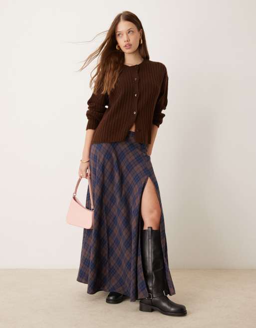 ASOS DESIGN – Spódnica maxi w kratę z rozcięciem z boku