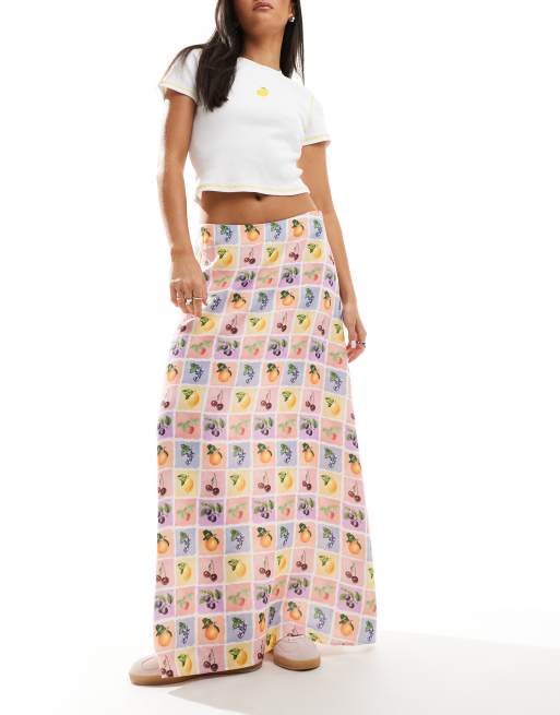 ASOS DESIGN – Spódnica maxi z mieszanki lnu w kafelkowy wzór z owocami