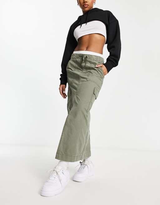 ASOS DESIGN – Spódnica midi w stylu cargo w kolorze khaki