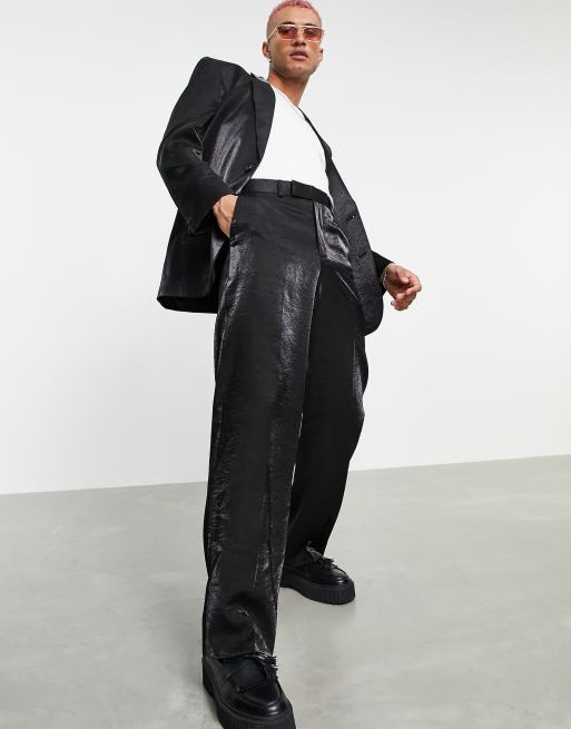ASOS DESIGN – Spodnie garniturowe z szerokimi nogawkami z błyszczącego czarnego materiału
