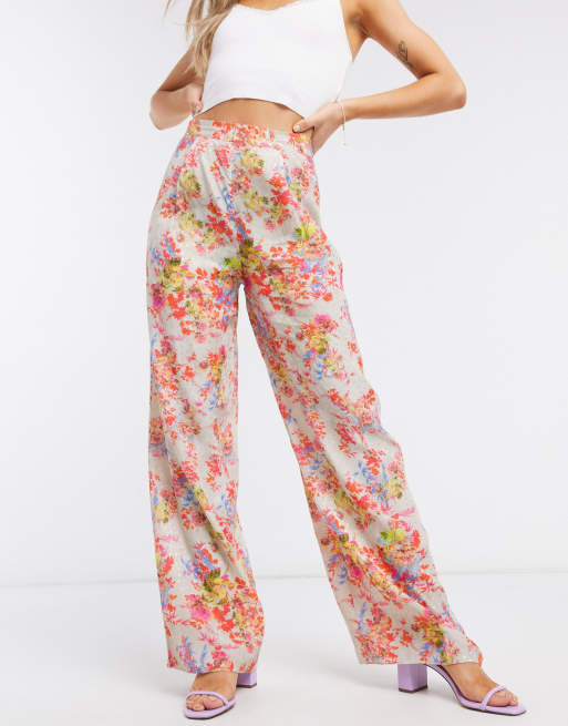 ASOS DESIGN – Spodnie garniturowe z szerokimi nogawkami ze wzorem w kwiaty