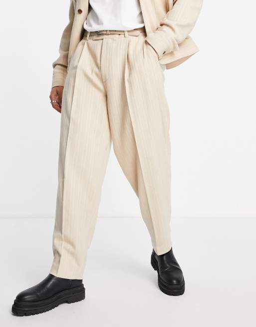 ASOS DESIGN – Spodnie garniturowe z szerokimi nogawkami w beżowe prążki