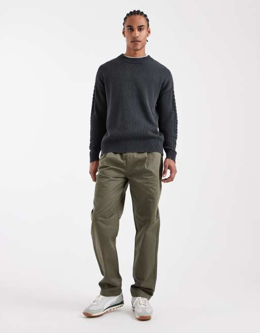 ASOS DESIGN – Spodnie w kolorze khaki o prostym kroju z zakładkami, część zestawu