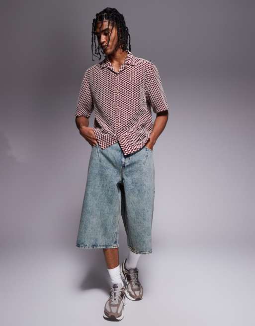 ASOS DESIGN – Sprane jeansowe jortsy o wydłużonym fasonie z zaszewkami