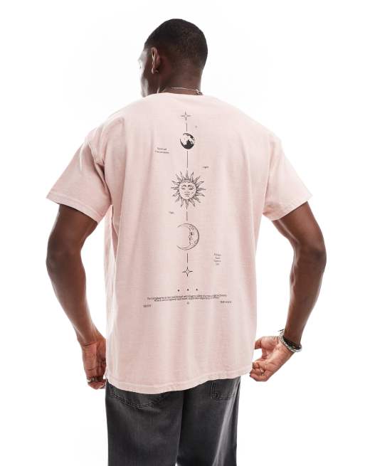 ASOS DESIGN – Sprany różowy T-shirt oversize z astronomicznym nadrukiem wzdłuż kręgosłupa