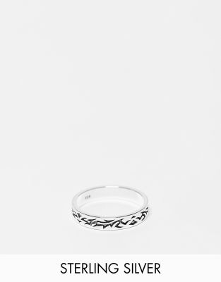 ASOS DESIGN – Srebrna obrączka z wytłaczanym tatuażowym wzorem