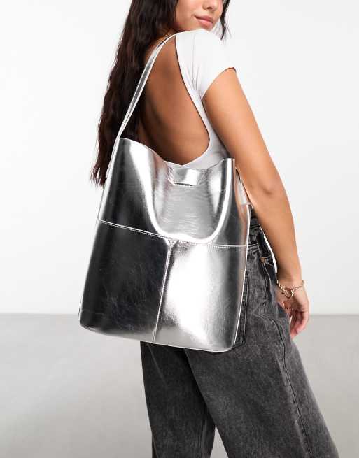 ASOS DESIGN – Srebrna torba typu tote z dwiema kieszeniami