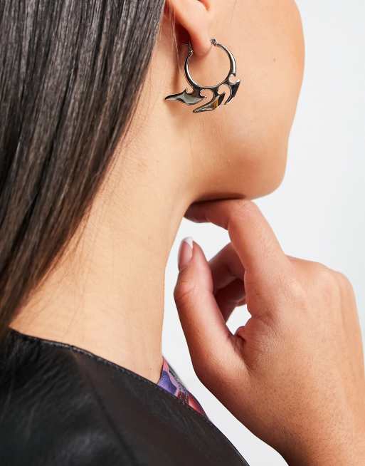 ASOS DESIGN – Srebrne kolczyki-koła w kształcie płomienia w stylu lat 90.