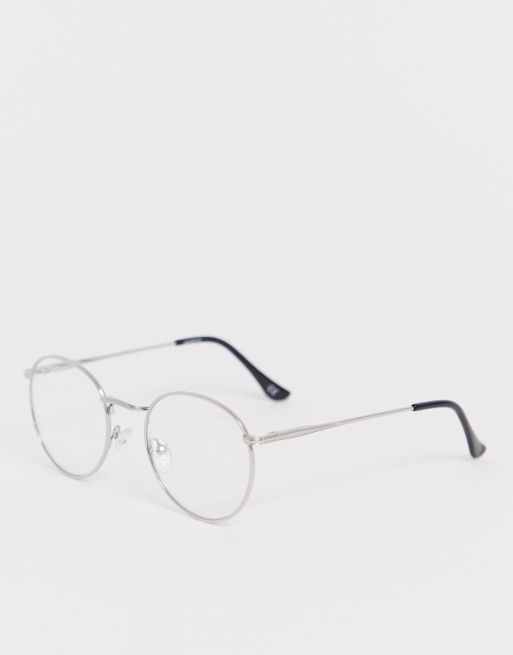 ASOS DESIGN – Srebrne okrągłe okulary zerówki z metalowymi oprawkami i przeźroczystymi szkłami