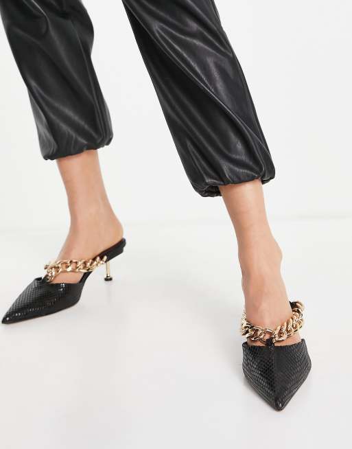 ASOS DESIGN – Stevie – Czarne klapki na średnim obcasie z ozdobnym łańcuszkiem