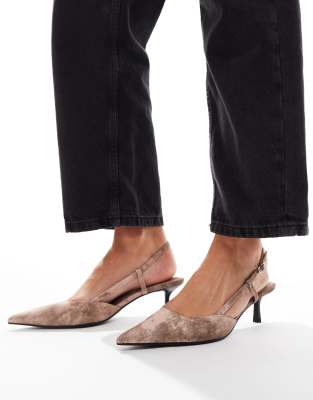 ASOS DESIGN – Strike – Różowe jeansowe buty na obcasach kaczuszkach z paskiem za piętą
