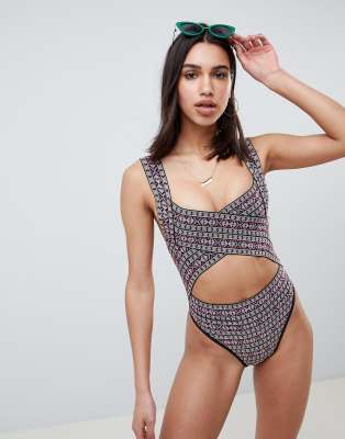 ASOS DESIGN – Strój kąpielowy z elastycznych pasów materiału w geometryczny wzór
