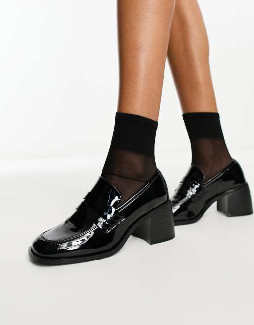 ASOS DESIGN – Substitute – Czarne eleganckie loafersy na średnim obcasie