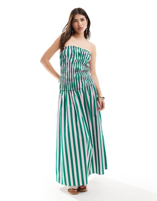 ASOS DESIGN – Sukienka maxi bandeau z obniżona talią w kolorowe paski