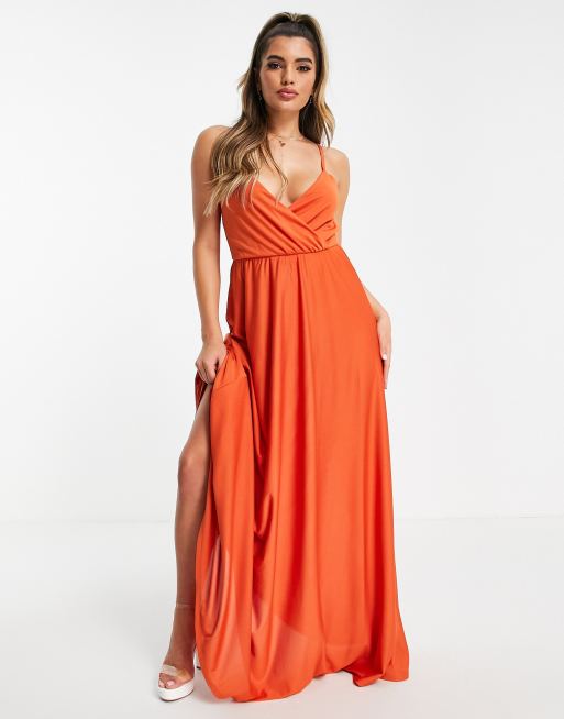 ASOS DESIGN – Sukienka maxi na ramiączkach z głębokim dekoltem i wiązaniem na plecach w kolorze rdzy