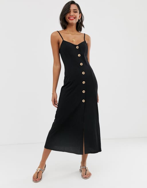 ASOS DESIGN sukienka maxi na ramiączkach z guzikami ze sztucznego drewna