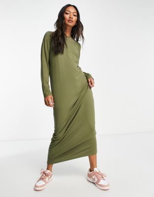 ASOS DESIGN – Sukienka maxi typu t-shirt z długim rękawem, khaki