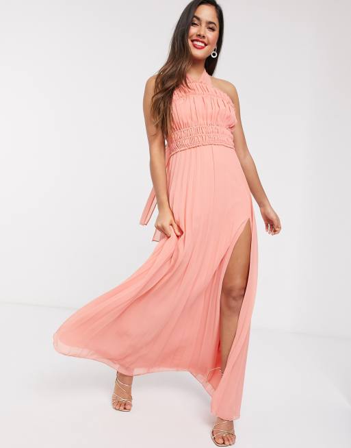 ASOS DESIGN – Sukienka maxi z dekoltem typu halter, marszczeniem w talii i plisowanym dołem