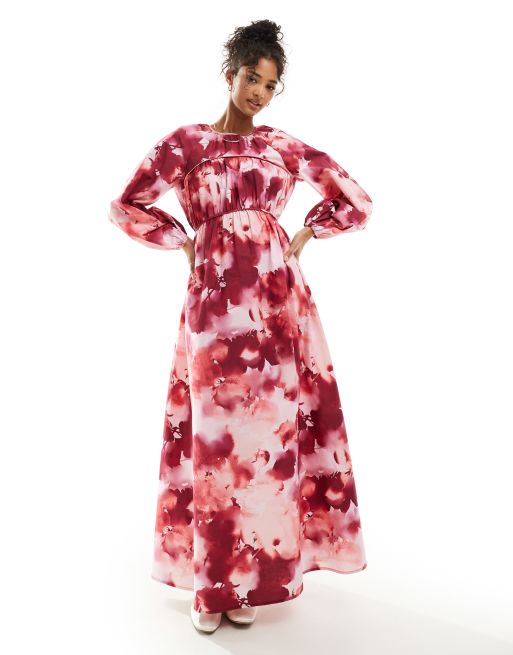 ASOS DESIGN – Sukienka maxi z marszczonymi szwami w rozmyty różany wzór