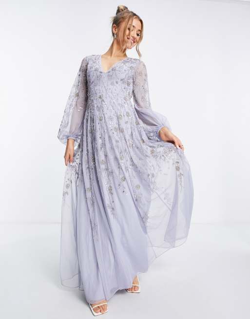 ASOS DESIGN – Sukienka maxi z obszernymi rękawami i subtelnymi kwiatowymi zdobieniami