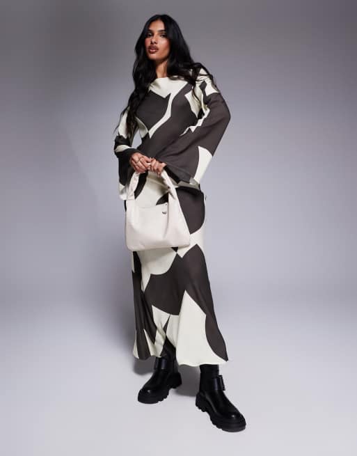 ASOS DESIGN – Sukienka maxi ze skosu z prostym dekoltem w brązowy abstrakcyjny wzór