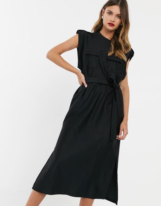 ASOS DESIGN – Sukienka midi bez rękawów z paskiem i kieszeniami