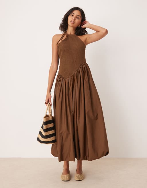 ASOS DESIGN – Sukienka midi na jedno ramię z siateczkową górą i bufiastym dołem