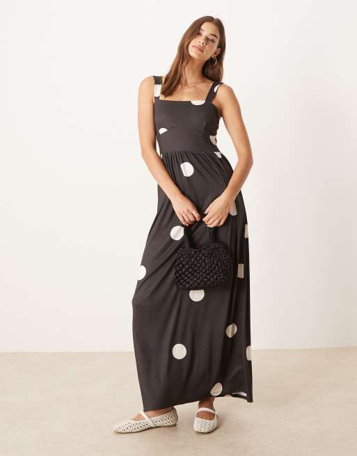 ASOS DESIGN – Sukienka midi w groszki na ramiączkach z kwadratowym dekoltem