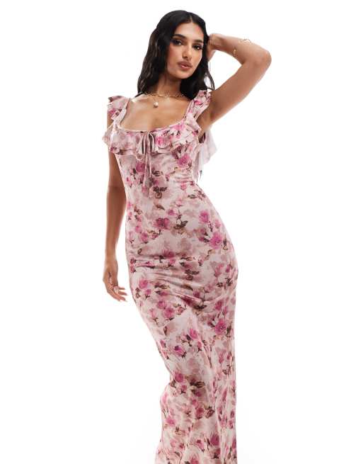 ASOS DESIGN – Sukienka midi z łezką i falbanką w drobny kwiatowy wzór