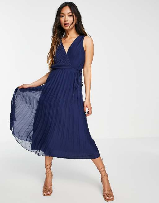 ASOS DESIGN – sukienka midi z kopertową górą, wiązaniem w talii i plisowaną spódnicą