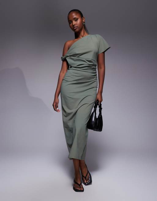 ASOS DESIGN – Sukienka midi z ozdobnie skręconym ramiączkiem w kolorze khaki