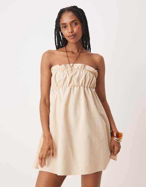 ASOS DESIGN – Sukienka mini z falbanką na dekolcie w zgaszonym brązowoszarym kolorze