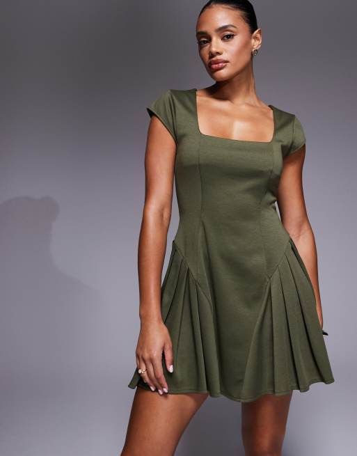 ASOS DESIGN – Sukienka mini z godetami w kolorze khaki