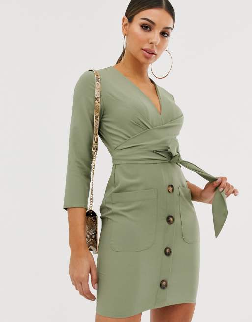 ASOS DESIGN – Sukienka mini z guzikami i paskiem do owinięcia wokół talii