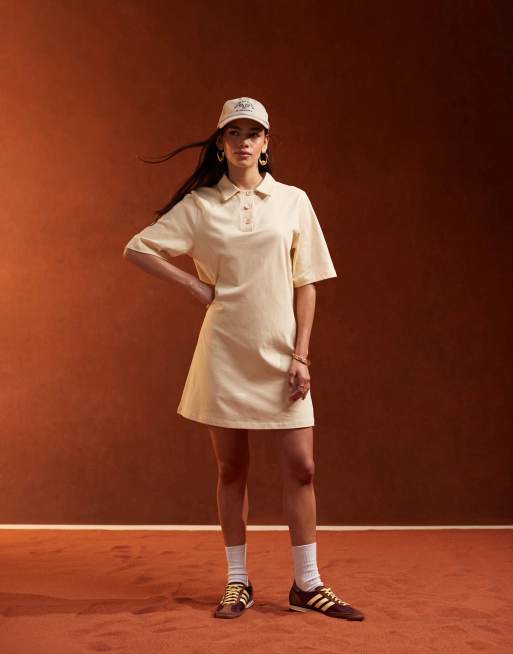 ASOS DESIGN – Sukienka mini z kołnierzykiem polo z plisą z piki w maślanym kolorze