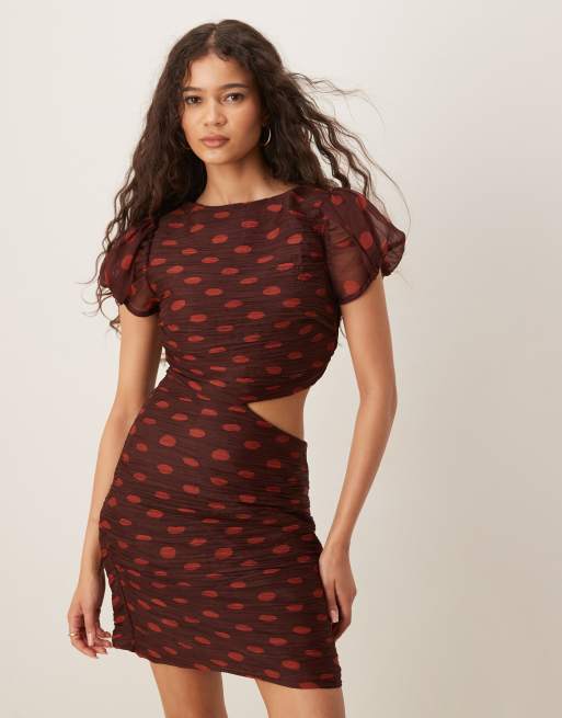 ASOS DESIGN – Sukienka mini z marszczoną górą i wycięciem w groszki