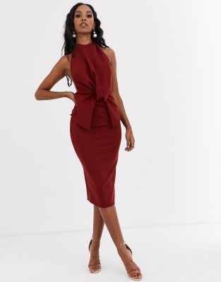 ASOS DESIGN – Sukienka ołówkowa o długości midi bez pleców z dekoltem pod szyję