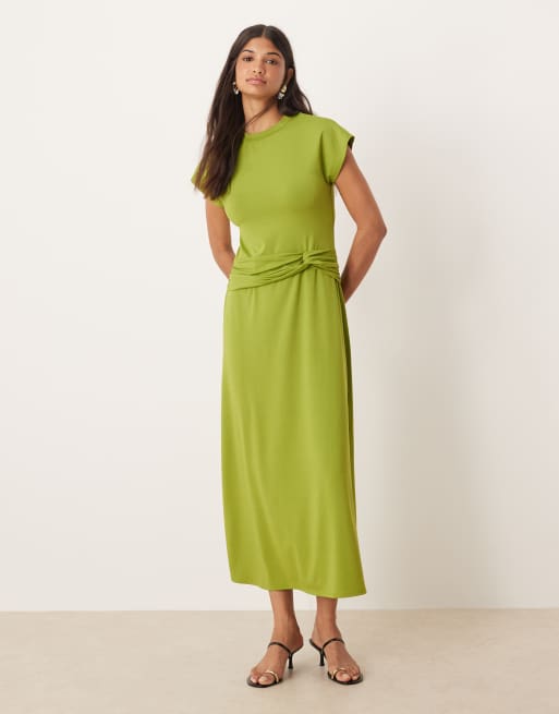 ASOS DESIGN – Sukienka t-shirtowa midi ze skręconą talią w kolorze cytrusowym