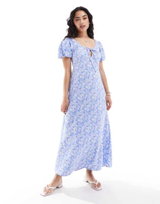 ASOS DESIGN – Sukienka wiązana midi z bufkami w kwiatowy wzór
