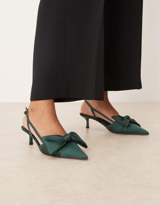 ASOS DESIGN – Sunshine – Ciemnozielone buty na obcasach-kaczuszkach z paskiem za piętą