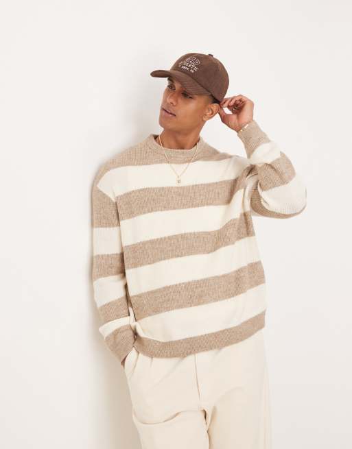 ASOS DESIGN – Sweter oversize w paski w kolorze beżowym i ecru