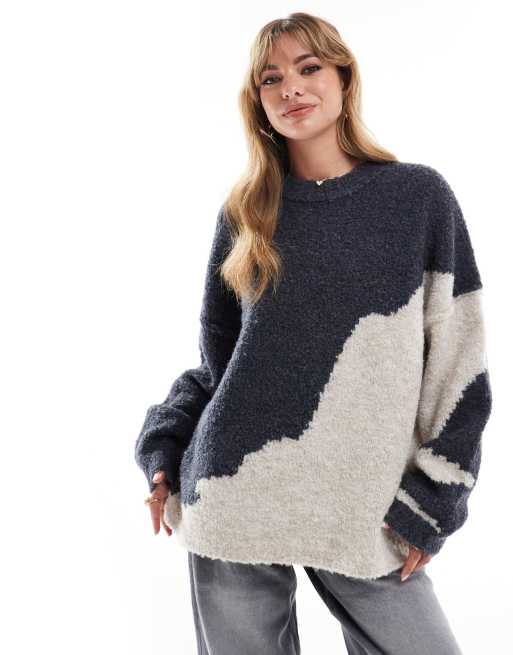 ASOS DESIGN – Sweter z dzianiny boucle z okrągłym dekoltem i abstrakcyjnym wzorem