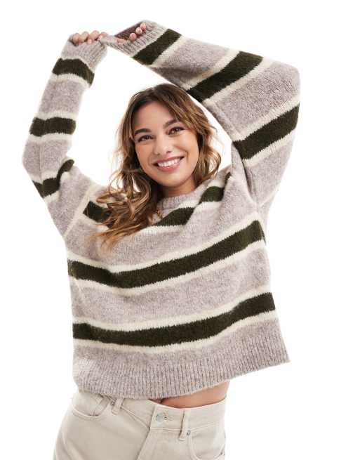 ASOS DESIGN – Sweter z puszystej dzianiny z domieszką wełny w zielone paski