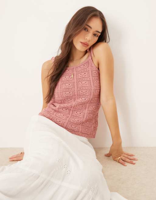 ASOS DESIGN – Sweter z szydełkowanej dzianiny w kolorze zgaszonego różu