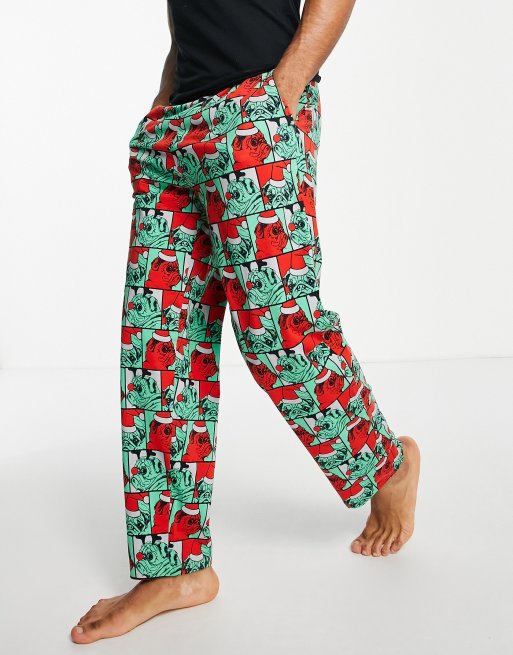 ASOS DESIGN – Świąteczne spodnie domowe z nadrukiem mopsów