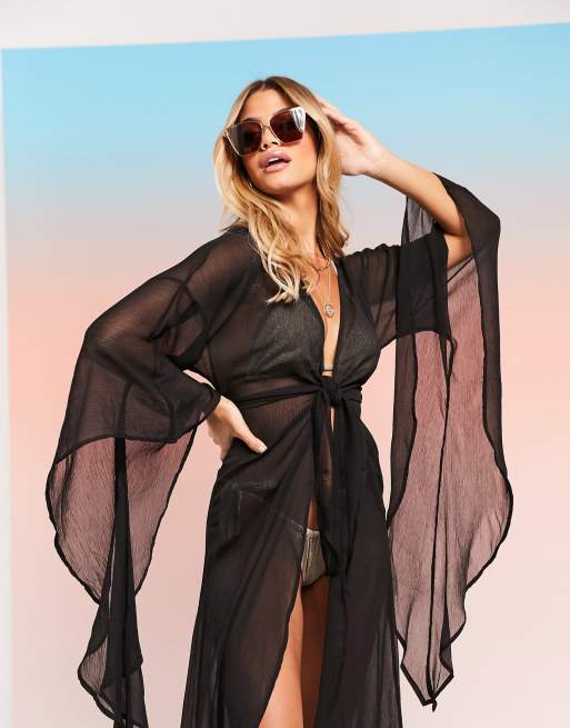 ASOS DESIGN – SWIM GLAM – Plażowe kimono maxi z rozkloszowanymi rękawami