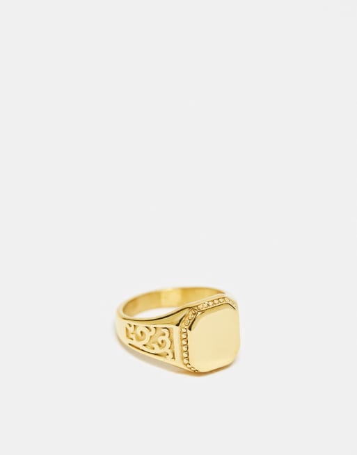ASOS DESIGN – Sygnet z wodoodpornej stali nierdzewnej w kolorze złotym z tłoczonym wzorem