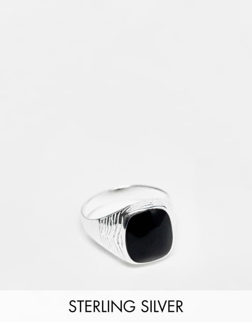 ASOS DESIGN – Sygnet ze srebra z wytłoczeniami i czarnym kamieniem