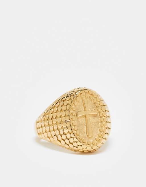 ASOS DESIGN – Sygnet ze stali nierdzewnej w odcieniu złota z krzyżem