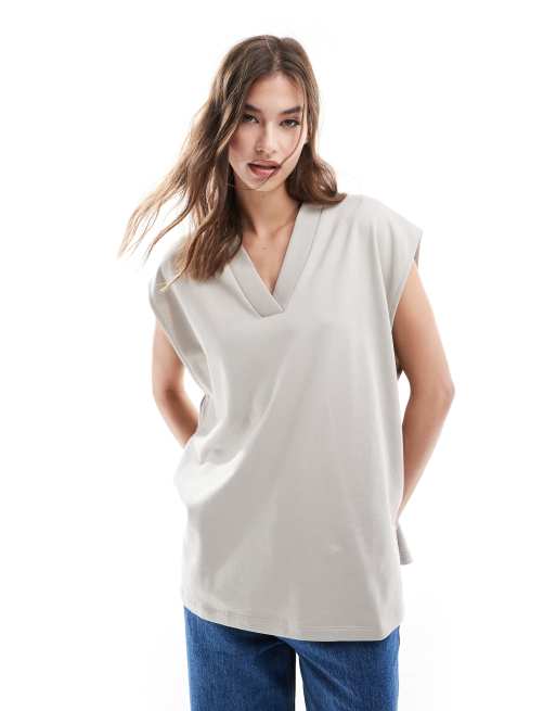 ASOS DESIGN – Szara bluza dresowa bez rękawów z dekoltem w kształcie litery V